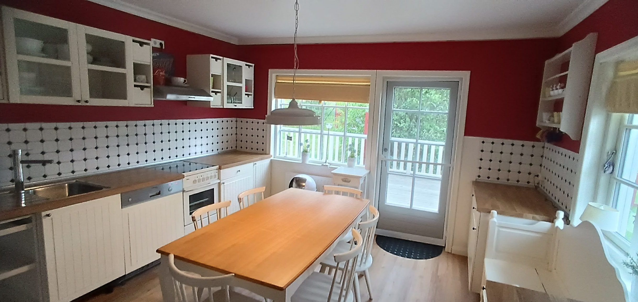 Die Küche ist komplett ausgestattet und bietet Platz für 6 Personen. Hier finden Sie diverse Elektrogeräte (u.a. Geschirrspüler) und alles was Sie für den Alltag brauchen. Von hier aus kommen Sie auf die große Veranda.