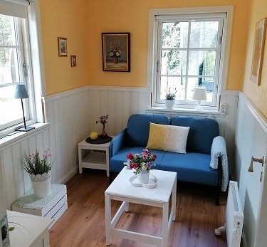 Im Erdgeschoss befindet sich das große Wohnzimmer, mit Kamin, Sofa und TV. Gleich nebenan bietet das kleinen Wohnzimmer eine schöne Rückzugsmöglichkeit.
